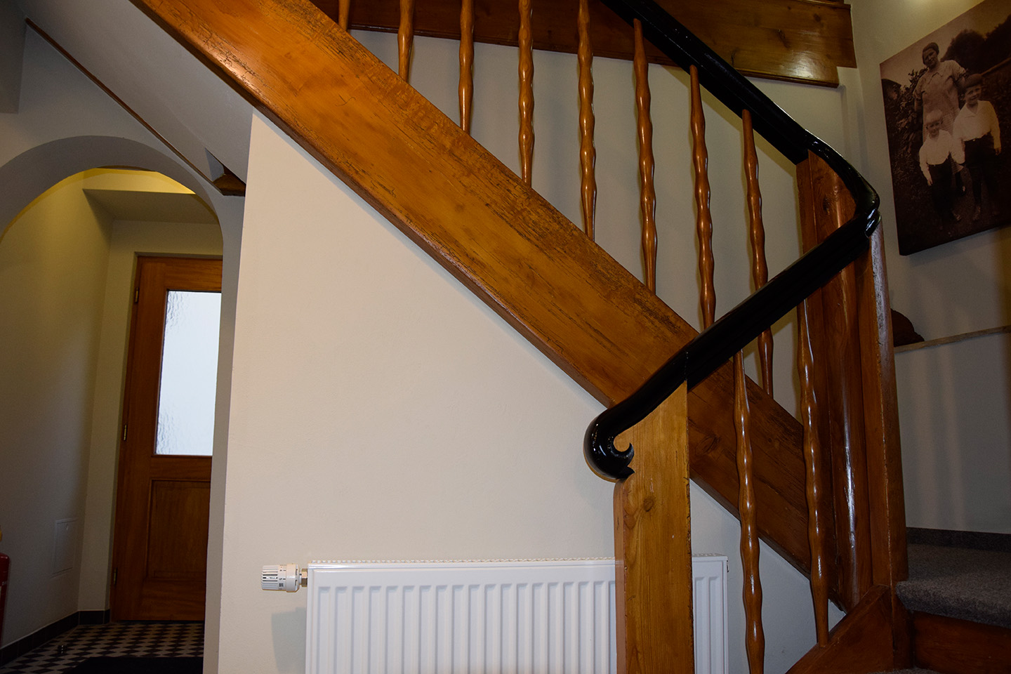 Reichsküchenmeister Ferienwohnungen: Treppengeländer abgeschliffen und lasiert, Handlauf schwarz lackiert, Wände Kalkputz u. gestrichen