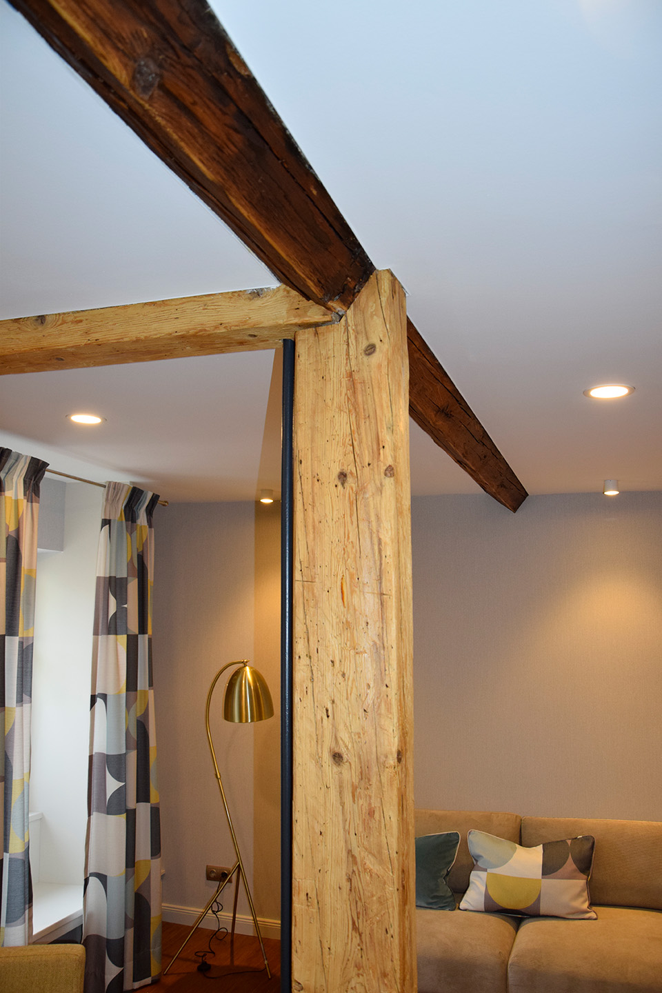 Hotel Markusturm: Decke mit Glasvlies beklebt und gestrichen, Wände tapeziert, Holzbalken mit Wachslasur gestrichen